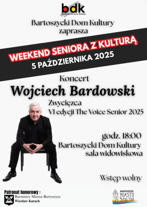 Już 5 października 2025 r. o godz. 18:00 w Bartoszyckim Domu Kultury odbędzie się wyjątkowy koncert Wojciecha Bardowskiego, zwycięzcy VI edycji The Voice Senior.